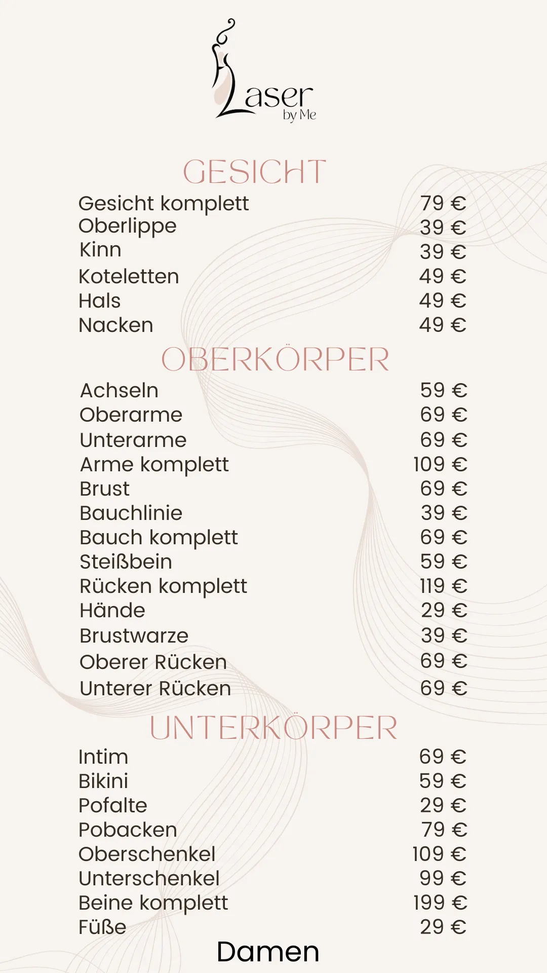 Da wir uns die benötigte Zeit nehmen für eine Seidenweiche Haut dauert eine Behandlung je nach Körperstelle die behandelt wird zwischen 30-120 Minuten.